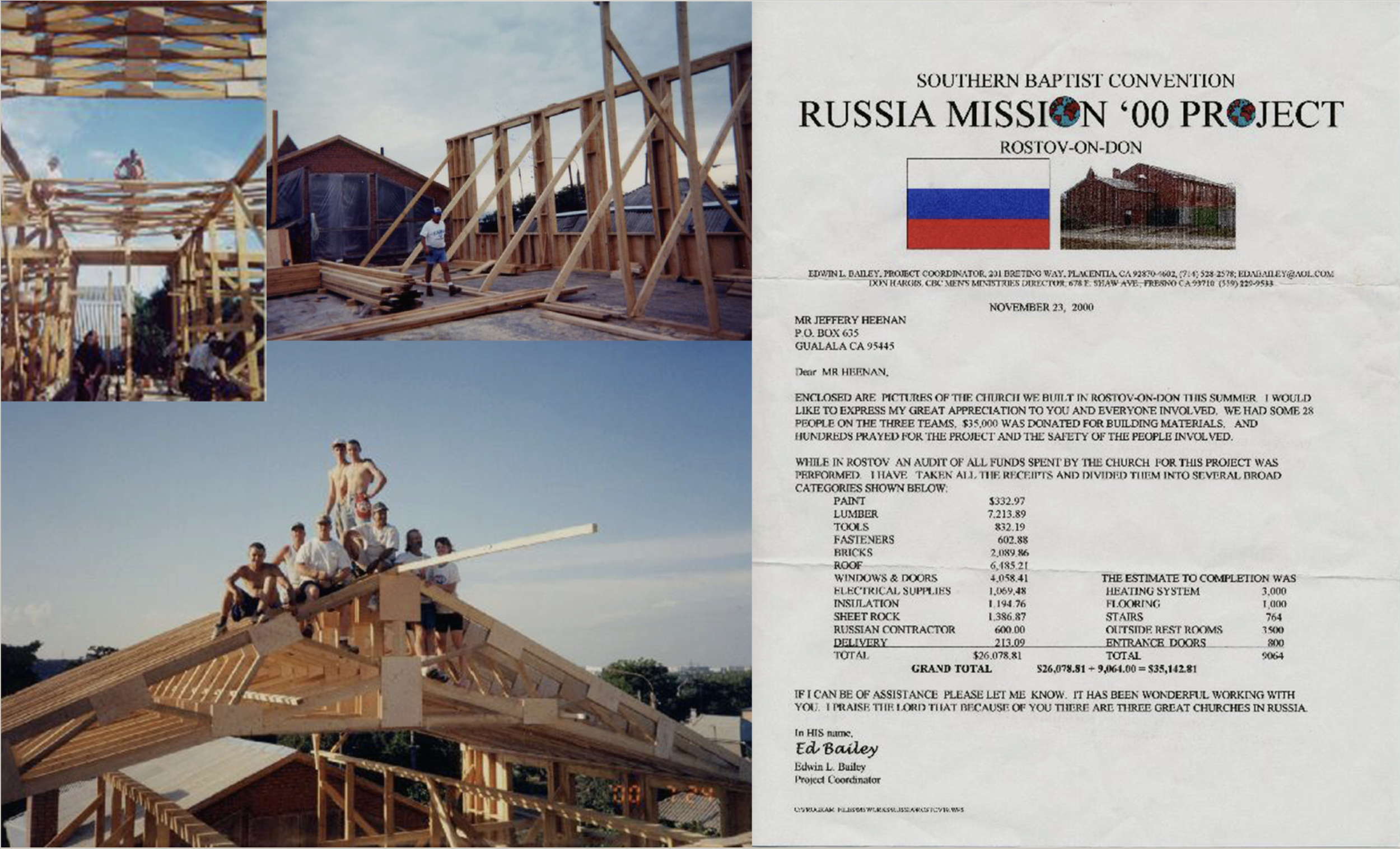 Several members of the H&H crew were honored to lead the construction phase for the Southern Baptist Convention's RUSSIA MISSION '00 PROJECT in July of 2000 where we helped to build a Church in Rostov-on-Don, Russia.